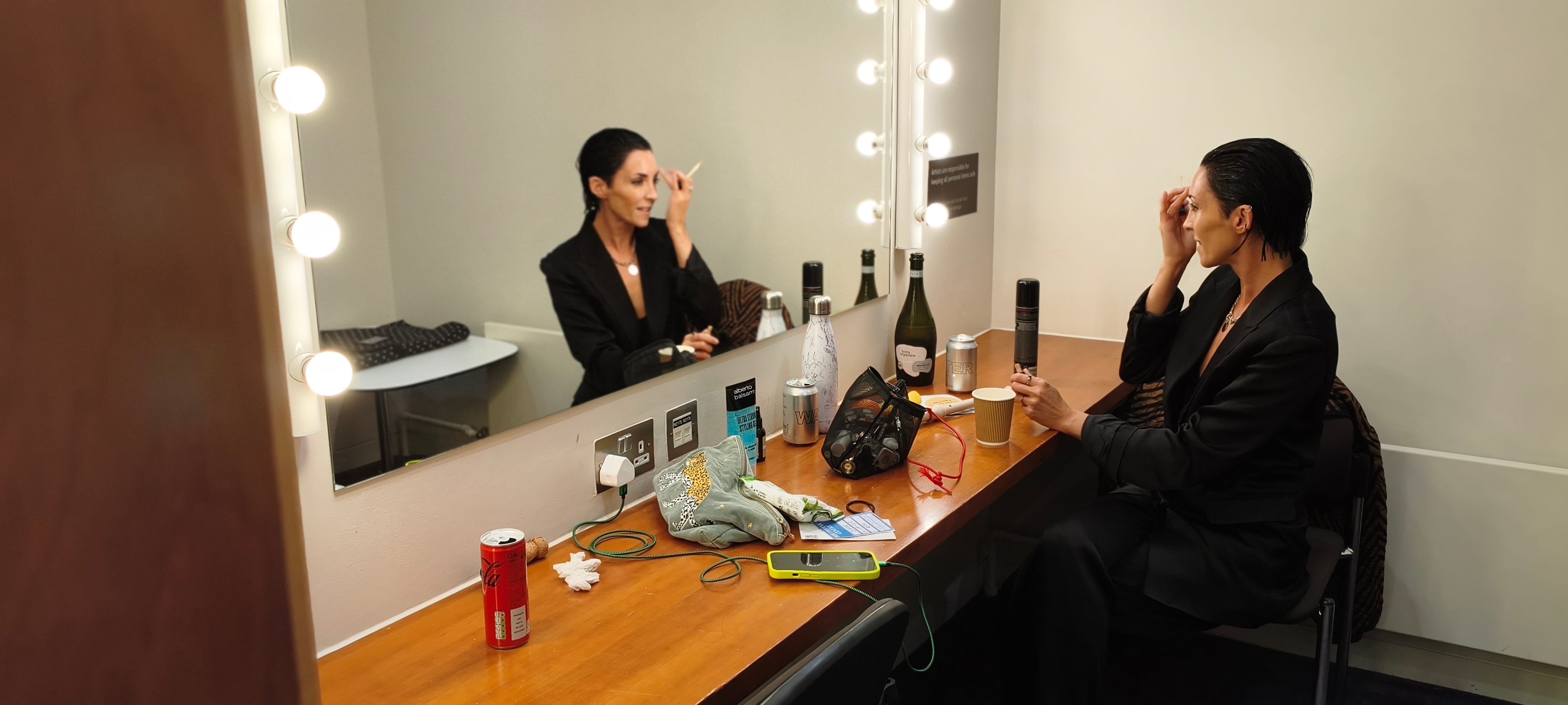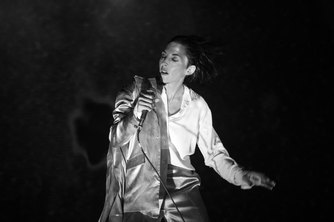 For our final outing of Black Dog on 25 September, I couldn’t have wished for a better farewell venue than the ICA. Taken up last minute by wonderful promoter Babayaga’s Hut (who put on the very first Black Dog at Bush Hall back in 2023 almost two years to the day). I sang my heart, lungs and guts out to a jammed room, and felt every single moment of the audience’s energy; from my slicked head to my bare feet. Thank you so much if you were there. And, thank you to Teri Varhol for capturing the moments on camera so beautifully too. Special thanks to chair, lamp and rug. They’ve toured the UK for black Dog for 2yrs, and once belonged in the family home of visuals/lighting wizard Dan Conway.